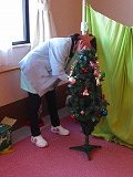 ご入居者様にも飾りつけを手伝って頂きながらクリスマスツリーの完成です!