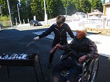 待ちきれずに匂いに誘われご入居者様も外に出てこられました✌