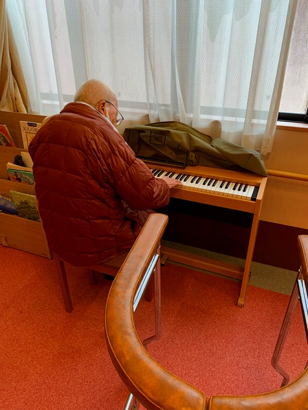 外出から戻ったらピアノを弾いてらっしゃるご入居者様発見♪