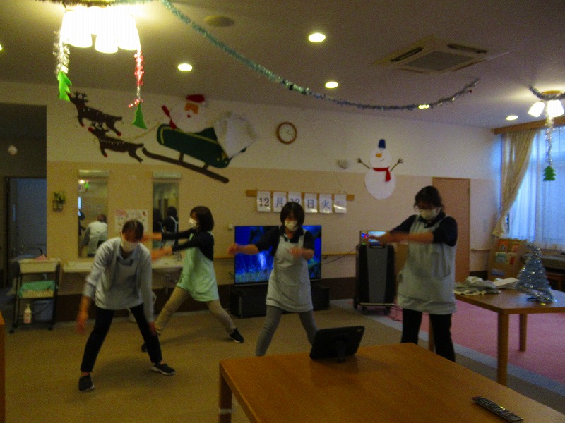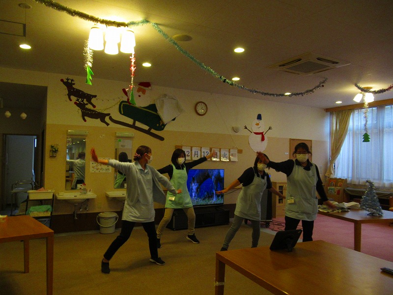 クリスマス会の踊りの練習の後、ご入居者様も巻き込んで踊りの練習♪