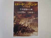 26日に映画鑑賞会を行い、「ロードオブザリング」の完結編となる3部目を鑑賞しました。