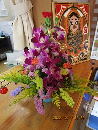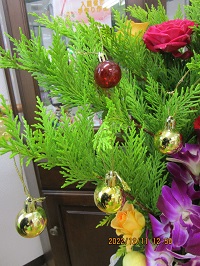 クリスマスが近いとの事で、クリスマスツリー風アレンジメントになっています。