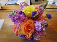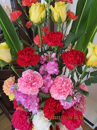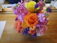 ピンク系のカーネーションがメインで温かみのあるアレンジメントになっています。