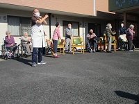 庭に出て外気浴をしながらおしゃべりしたり歌を歌ったりして過ごしました
