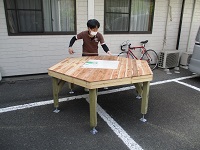 職員が台を作ってくれました