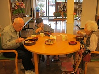 スタッフの真似をしながら、一生懸命身体を動かされています!