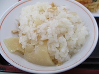 ご飯には筍がたくさん入っていたり、天ぷらは衣がサクサクで美味しそうに食べられていました。