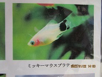施設の玄関にある水槽にミッキーマウスプラティが仲間入りしました