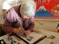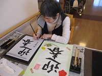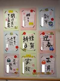 お手本を習って書いたり、自分の好きな言葉を書いて頂きました。