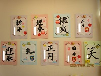 折り紙で作られた寅やだるまで飾りつけをして、食堂やラウンジに掲示しております。
