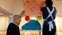 入居者様の男性お二人が飾りつけをお手伝いしてくださいました。