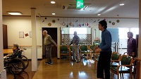 毎朝9時~ラジオ体操と転倒予防体操と本日の予定をお話ししています。