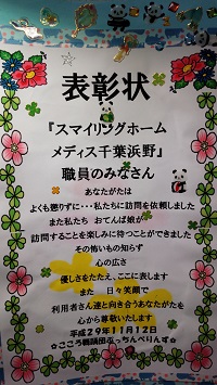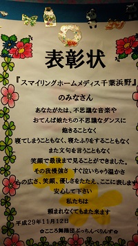 入居者の皆様だけでなくスタッフにも表彰状を頂きました。