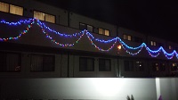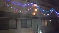 長いベランダやお庭、塀を色とりどりのイルミネーションで飾りつけました。