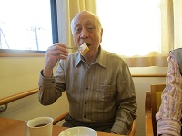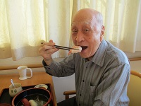 お寿司を召し上がってニッコリされているところを撮らせていただきました。