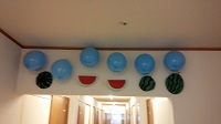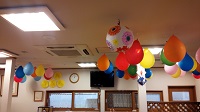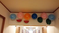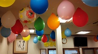 今年はたくさんの風船を天井や壁に飾り付けています。