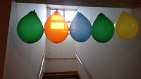 廊下、や階段にも風船がたくさん飾ってあります。