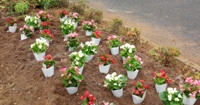 ポットでお花を買ってきて土に植えかえる作業を致しました。