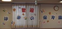 はまの保育園のお友達が見えるので壁に歓迎の文字や絵を貼り付けて頂きました。