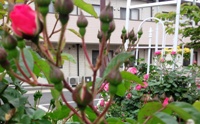 お庭のバラの花が咲き赤、ピンク、黄色、白と今が見ごろです。