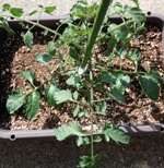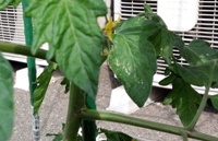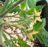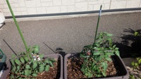 今朝先日植えたトマトに黄色いかわいらしい花が咲いていました。
