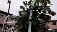 あとは昨年植えたピンクや赤いばらがアーチに絡んで新芽をたくさんつけています。