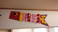 2F食堂に泳ぐ鯉のぼり制作中です。