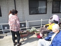 プランターの手入れをお1人がしていると数人の方もお手伝いを