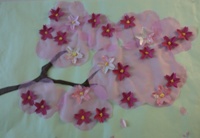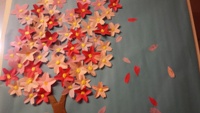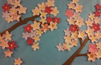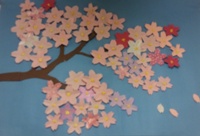 手作りのサクラが壁や廊下にたくさん咲いています。