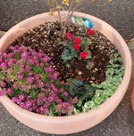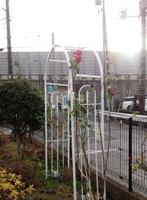 赤いばらは今年に植えました。すくすく成長しアーチのてっぺんの高さになりました。