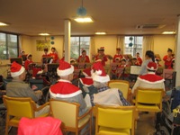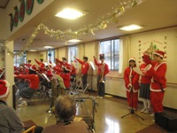 生浜中学吹奏楽部の25名の演奏に入居者様ご家族様サンタさんトナカイさんスタッフもノリノリでした!