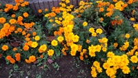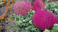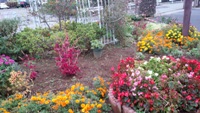 晩秋の庭には黄色やピンクの花が咲いていますが夏とは違う落ち付いた色合いのお花です。