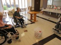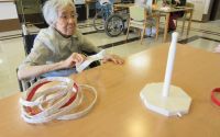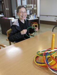 各テーブルで輪投げ遊びをされています。笑顔・真剣な表情・・皆さんコロコロ表情が変わり楽しそうです(^^♪