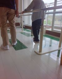 お話しながら楽しくリハビリしていますよ(^^♪足もしっかり挙げられて歩行も安定しています。