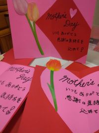 母の日のメッセージカードをスタッフが手作りで準備しています(^^♪