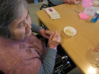 今日は入居者様と手作りイベントです(^^♪ 何を作っているかわかりますか? 出来上がりは次のお楽しみに(^^)