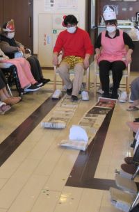 鬼を退治して福を呼び込みましょう(^^♪ 足を使って何をしているのでしょうか? 皆さん笑顔です。