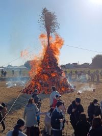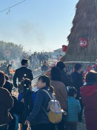 点火すると瞬く間に火が広がりダルマのはねる音などが鳴り迫力がありました。今年一年皆さまが健康で過ごせるよう願いを込めて煙は空に向かって立ち上っていました。