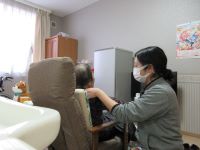 お部屋でお話しながらマッサージです。「気持ちいいよ~」と笑顔でお話してくれます(^^♪