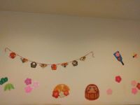 入口と廊下の飾りはこんな感じです。施設がお正月雰囲気になってきました(^^)