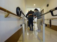 踏み台を使ってリハビリです。その方に合わせたリハビリで対応しています。