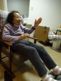 お部屋で足のマッサージ機を使用されています。「気持ちいいよ~」と笑顔です。