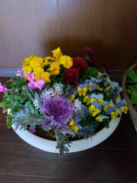 ミニ菊花展の菊が終わってしまい・・残念・・と思っていたところ、入居者ご家族様より可愛い寄せ植えの鉢が届きました。ご自宅で大事に育てられたお花を施設へもってきて下さりありがとうございます。