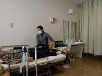 ベット上でストレッチを行い、「気持ちいいよ」と嬉しそうに言ってくださってます。