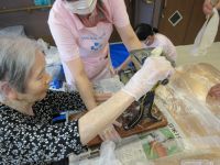 うどんの下準備から開始です(^▽^)/ 入居者様もお手伝いして下さいました(^^♪ 美味しいうどんが出来ますね(^▽^)