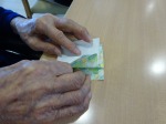 今日は入居者様と折り紙をしています。細かい作業もありますが、皆さん頑張って作っています。