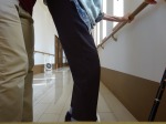 リハビリで散歩途中お花を見て「きれいね~」と嬉しそうです。施設の中でもリハビリ頑張ってます。