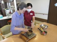 入居者様と一緒に手作りおやつです(^^♪ 今月は甘いこちらを作ります!