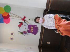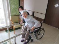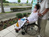 通常の車いすで座位保持の練習ですね。安定して座っていられました(^^)旦那様との散歩も楽しみですね。
