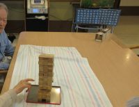 皆さんで集まってジェンガです!!崩さないように慎重に1本づつ抜いていくのはハラハラドキドキですね(^^)